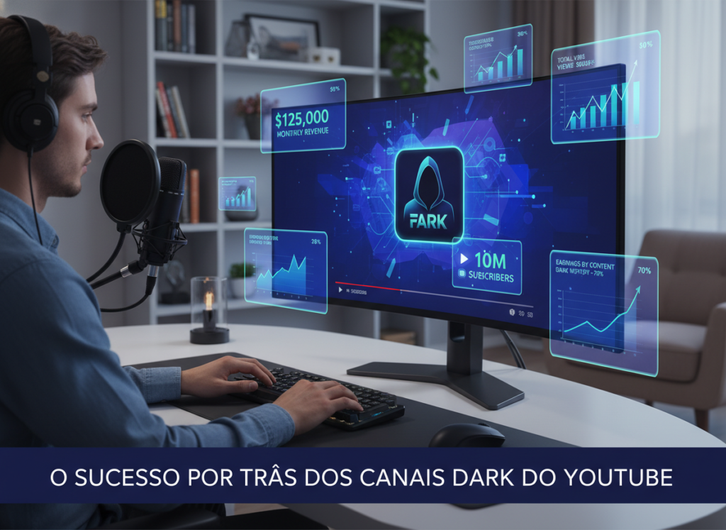 Um canal dark (ou canal faceless) é um formato de canal no YouTube onde o criador de conteúdo não precisa expor o seu rosto. Em vez de depender do carisma pessoal ou de equipamentos caros de gravação, o foco total vai para a qualidade do roteiro, da edição visual e da narração (que também pode ser gerada por IA).