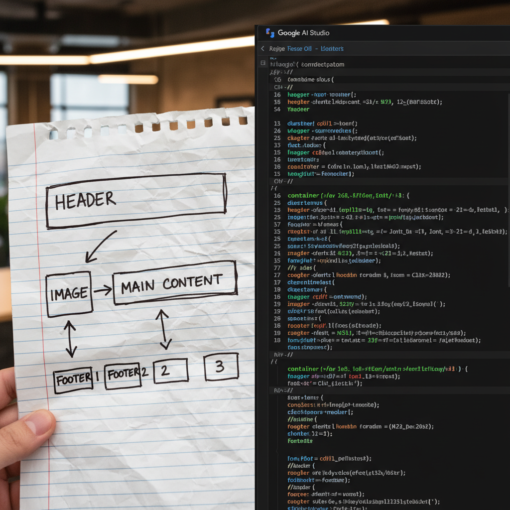 Em seguida, desenhe um esboço. Não precisa ser uma obra de arte; um simples rascunho em papel ou uma montagem rápida no Figma ou Canva serve. O modelo Gemini, que alimenta a criação da Landing Page com Google AI Studio, possui visão computacional. Se você fizer o upload de um desenho mostrando onde quer o título, o vídeo de vendas, os depoimentos e o botão de CTA (Chamada para Ação), a IA entenderá a estrutura visual instantaneamente. Isso economiza horas de tentativas e erros tentando descrever posições de elementos apenas com palavras.